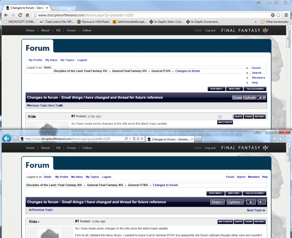 If this helps you at all, I took a full screenshot of the differences between what I see in Chrome vs what I see in IE on the same machine. The image is somewhat large, so click on the thumbnail to view the full image.  So, along with that multi-quote button being out of place, the top portion of the forum is strangely formatted as well. Let me know if I can provide any more info. It's nothing I can't live with, if I'm the only one experiencing this behavior. Edited by user Wednesday, June 19, 2013 8:51:47 AM(UTC)